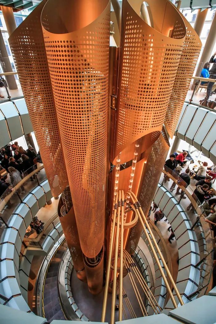 在芝加哥,星巴克烘焙工坊是一個巨大的擁有五層的星巴克門店。金屬的運用是展現(xiàn)著芝加哥傳統(tǒng)工業(yè)城市的文化。