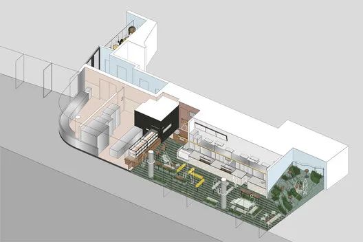 門店中央是用來儲存和烘焙咖啡的銅管,咖啡通過不同管子傳到建筑各處。