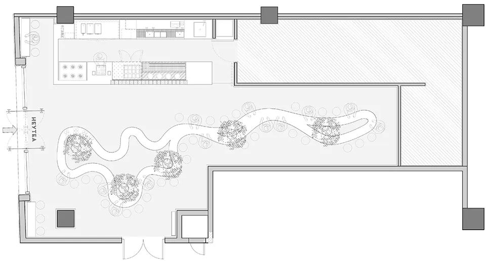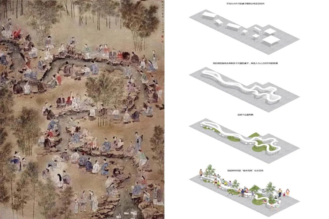 這一門店的靈感來源于“曲水流觴”,在這里,水成為了共享元素。