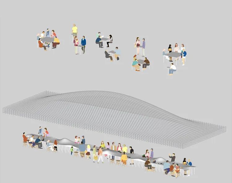 門店空間同名字一樣,通過拼合圓桌的方式將人們的距離“強行”粘在一張桌子上,但又保有了一些個人空間。人們可以圍著桌子坐不同的方向,從而形成不同規(guī)模的社交圈。