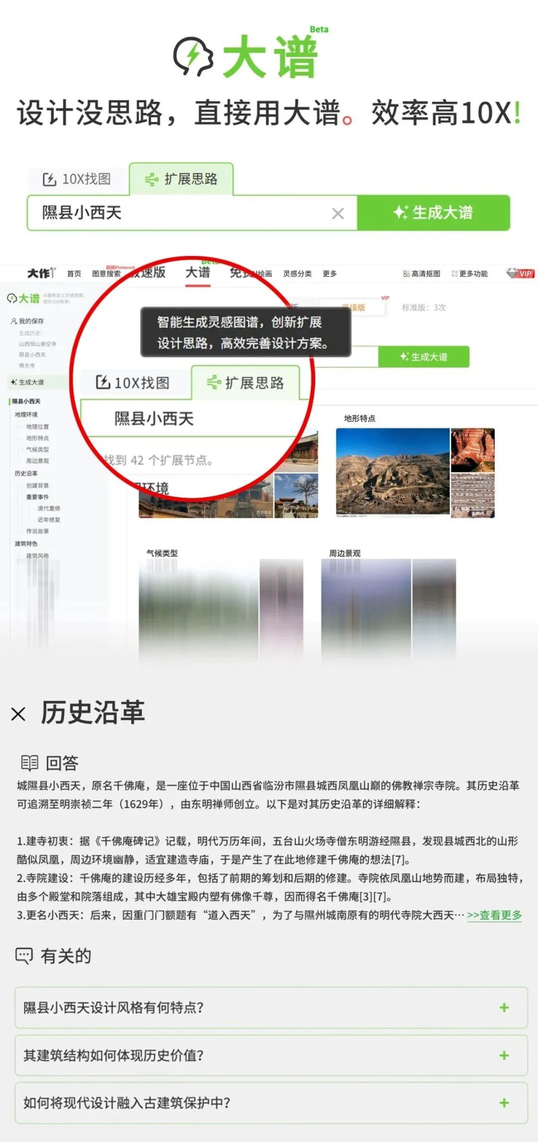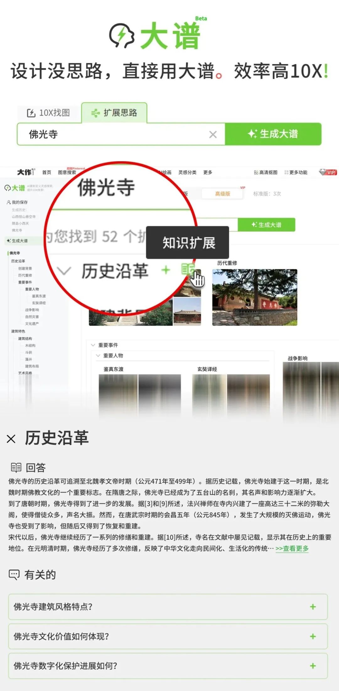 【大譜】在 擴展思路 的靈感圖譜的每個分類節點旁白,新增了 知識擴展 按鈕。