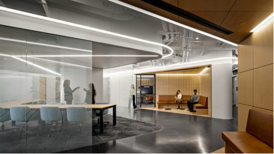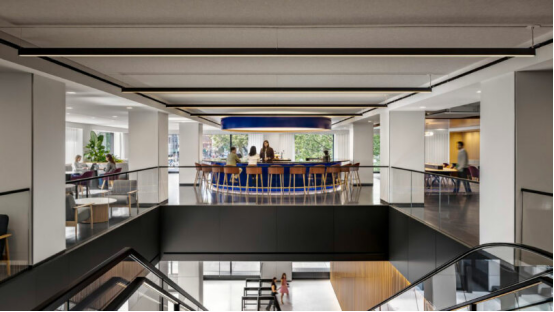 Gensler設計總監John Budesa闡釋道:"我們構建了支持創新的空間生態鏈"??偛繛?000余名員工規劃了三大功能帶: