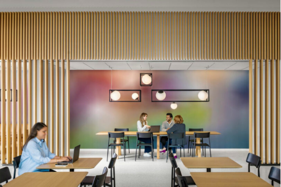 "動態環境能提升工作體驗的質感,"Budesa強調,"我們確保人員在各個功能區之間的流轉完全無縫"。這座總部不僅承載著IBM的協作哲學,更重新定義了后疫情時代的辦公范式。