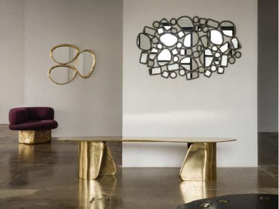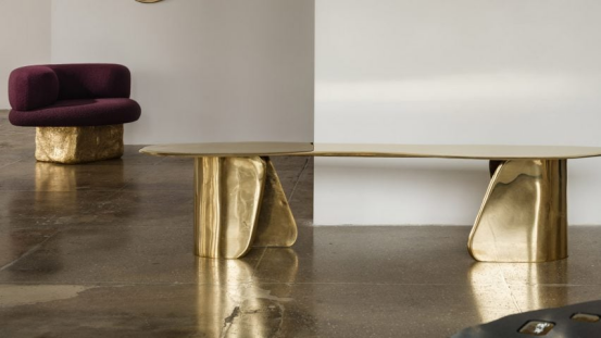 Lucas Recchia在切爾西Bossa Furniture畫廊個展中展出的"Morfa no 09"青銅長凳,纖細臺面搭配雕塑感支腳。阿根廷Ries Estudio則用本土草種制作模具,鑄造出鋁制桌椅系列,正在SO-IL建筑事務所設計的9 Chapel大廈中展出。