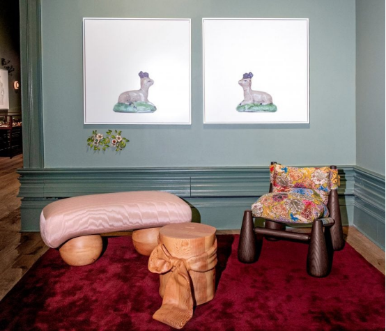 Sam Klemick在AvroKos Host on Howard展出的雕塑感凳具。攝影:Krista Schlueter