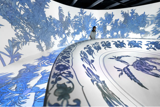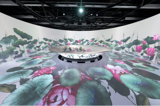 為了增強觀展體驗,部分展廳還融入了意想不到的設計元素。例如,一個展廳中央擺放著放大的瓷器復制品,內壁布滿隨風搖曳的花卉紋樣;另一個展廳則巧妙利用天花板空間,展示精美的藻井圖案與動態投影交織的奇幻景象。