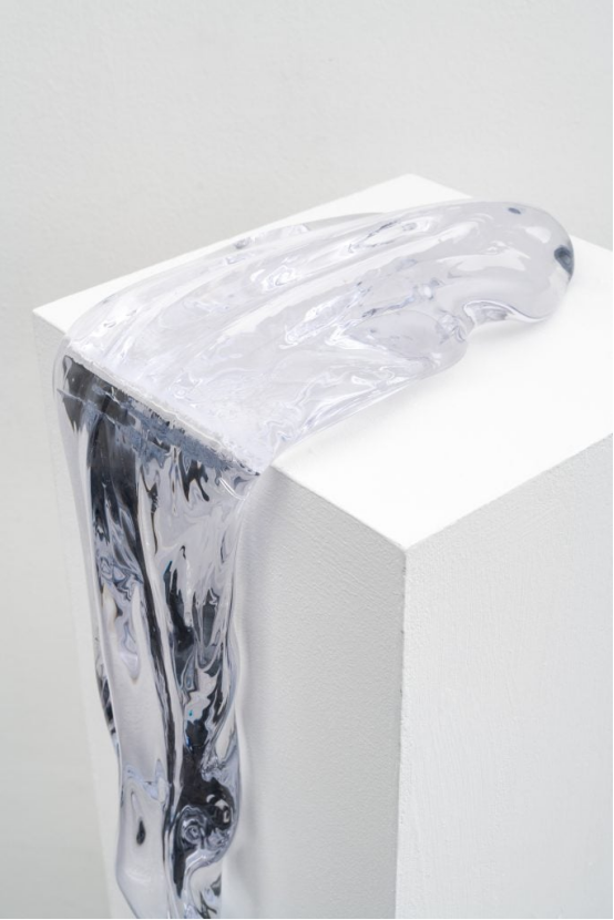 莉比·希尼(Libby Heaney)2024年的作品《咆哮者》(Growler)是一件玻璃雕塑,但看起來卻完全不像玻璃。盡管表面晶瑩,它卻仿佛黏稠、膠質而粘膩,從基座一側垂墜滴落。如果你碰巧戳它一下,可能會期待它是粘糊糊的。它不太像玻璃,反而更像粘液。