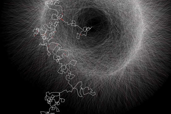 成果就是他的“量子繪圖”(Quantum Drawings,2021年–),這是一個持續進行的藝術系列,使用量子計算機產生的數據創作。它們是超凡、神秘的作品,充滿了以不可預測的方式旋轉、波動、舞蹈和演變的線條和涂鴉。同樣不可思議的是“Q-Stable”(2025年)的輸出,楊將量子測量引入Stable Diffusion的人工智能生成模型,產生了異星邏輯的生動表達。