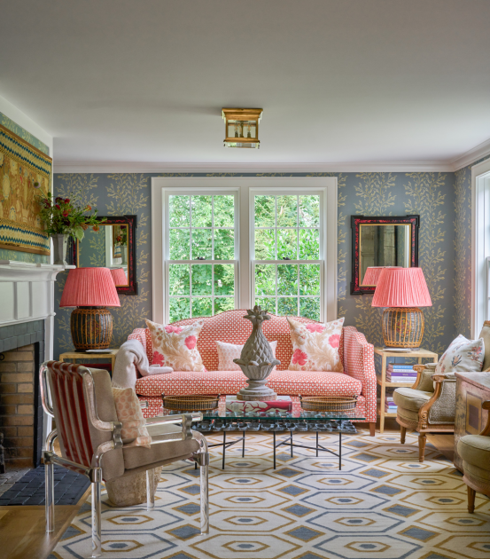 鮮艷的色彩和趣味的圖案為這間來自 The Barns by Ali Mahon 的紐約客廳注入了魅力和個性。