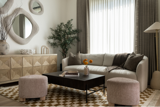 “家具和裝飾正在呈現(xiàn)更多雕塑形態(tài),” Wyeth Ray Interiors 的設(shè)計師 Whitney Ray 說。“從曲線沙發(fā)到不對稱鏡子和帶有柔和邊緣的石桌,這些形態(tài)增加了視覺趣味,同時喚起一種寧靜感和與自然的聯(lián)系。這種趨勢橋接了藝術(shù)與功能,常常模糊了家具與雕塑之間的界限。”