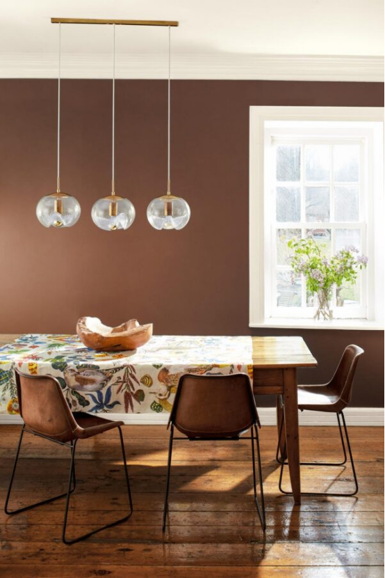 如果你還沒準備好打造一個全棕色的房間,一面特色墻是絕佳的嘗試方式。將一面墻刷成深咖啡色或暖摩卡色,可以立刻創造一個引人注目的視覺焦點,瞬間改變空間氛圍。特色墻尤其適合放置在床、沙發或餐桌后方,用以框定主體家具。用周圍墻壁的淺色調加以平衡,以保持空間的通透感。這種方式的美妙之處在于,它能增添深度和戲劇感,又不會讓空間顯得壓抑。