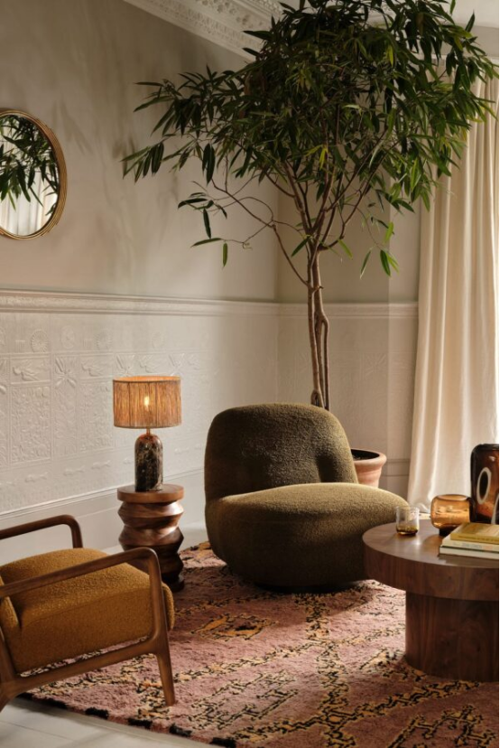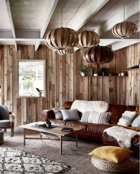 木質墻面曾一度被認為過時,如今卻以現代風格強勢回歸。無論你選擇光滑的胡桃木面板、質樸的回收木材,還是橡木垂直板條,棕色調的木墻都能為任何房間增添質感、溫暖和個性。它們在客廳和臥室中效果極佳,能營造出舒適愜意的包裹感。若想顯得輕盈,可用奶油色軟裝和通透窗簾搭配木墻;若要營造更沉穩的氛圍,則可用深色家具和柔和燈光來平衡。木質墻面模糊了建筑與設計之間的界限,增添了自然之美,讓房間既永恒又現代。