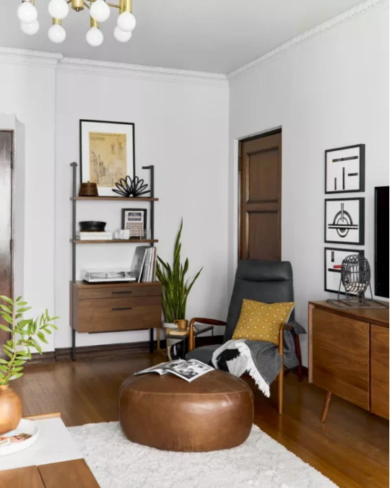 中世紀現代設計具有永恒的吸引力,而棕色是其隨性魅力的核心。經典單品如胡桃木邊柜、柚木咖啡桌以及巧克力色或焦糖色的低矮皮革沙發,能立刻定下基調。這種風格的美在于其平衡感——干凈的線條、有機的形狀和功能性的優雅。棕色通過增添溫暖和穩住輕盈的極簡感,增強了這種平衡。為完善整體外觀,可搭配黃銅或啞光黑色燈具、幾何圖案地毯和中性色調墻壁以形成對比。用棕色融入中世紀現代元素,能讓你的空間既時尚又親切,致敬了一個至今仍不過時的設計時代。
