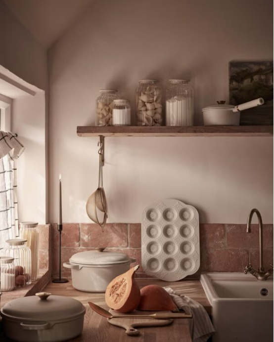 棕色櫥柜正式回歸,但這次比21世紀初的橙色調木材更光滑、更精致。胡桃木、深咖啡色和啞光巧克力色櫥柜打造出溫暖、精致且永恒的廚房。搭配黃銅五金件增添現代感,或搭配白色石英臺面形成鮮明對比。天然木材的開放式擱架也可以打破大塊櫥柜的沉重感,增加視覺趣味。與近年來主導的純白和灰色相比,廚房中的棕色顯得格外溫馨。這是一種平衡了功能性與溫暖的趨勢。