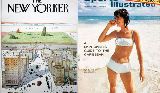 索爾·斯坦伯格的插圖以夸張的地理視角詮釋曼哈頓中心主義,成為雜志史上被復制最多的封面,確立了城市地方主義的視覺速記符號。