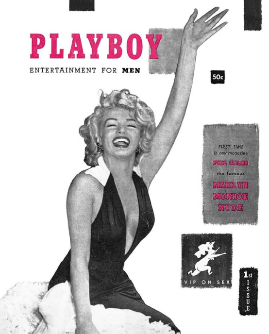 休·海夫納以夢露的裸體日歷照片作為首期中心插頁,盡管沒有廣告支持仍售出5萬多份,確立了《花花公子》作為主要出版力量的地位,創建了男性生活方式雜志的模板。