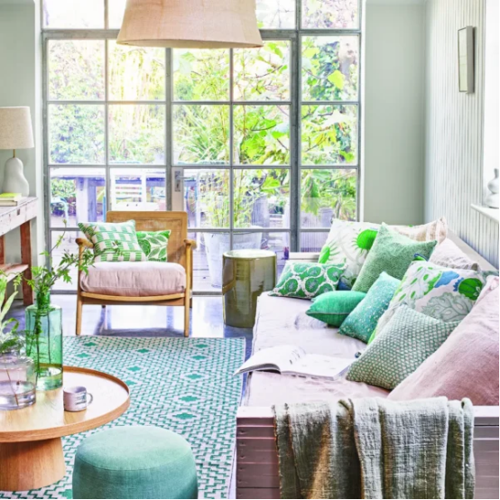 自然中的色彩能夠安撫神經系統、提振情緒。柔和的綠色、大地棕色、沙色中性色調和天空藍,將我們與本能的信任之地相連。添加藝術品、照片或甚至森林、山川、海洋的場景壁畫,都能強化這一效果。采用自然色調的房間顯得更開闊、更溫馨,而帶有柔和漸變的裝飾則模仿了地平線與日落的意境。實際操作可以很簡單,比如將一面鮮艷的強調墻換成鼠尾草綠,或掛上一幅林間小徑的大幅畫作。這些細微的選擇不僅美化空間,也有助于身體放松與恢復能量。