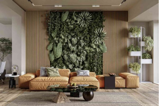 親生物墻面單元,常被稱為“綠植墻”,將平淡的建筑轉化為充滿活力且有益健康的特色。你不僅僅是在掛畫,而是在打造一座垂直花園——一個由綠植或甚至苔蘚板組成的裝置,既能凈化空氣,也能柔化聲學效果。這些墻面不僅視覺驚艷,更能通過過濾毒素和釋放氧氣真實改變你的環境。如果覺得養護鮮活植物壓力大, preserved 苔蘚板或模塊化墻面花園更易維護,卻同樣具有深度的恢復力。一面綠植墻為日常空間注入動感、質感與生命力,提醒我們墻面不必是靜止的——它們可以呼吸、生長與滋養。