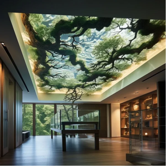 自然中少有直線或尖角,多的是曲線、螺旋、分形與枝狀圖案。我們的大腦能瞬間識別這些形狀,并以輕松舒適的方式回應。這就是為什么仿生家具、拱門、圓形地毯或帶分形圖案的裝飾比冰冷的網格更顯親切。實際應用包括桌子的圓角、樹葉靈感印花的墻紙,或甚至形似樹冠的天花板板材。這些細微的設計細節觸發了我們的演化記憶,提醒我們的神經系統那些安全、滋養且充滿生機的環境。
