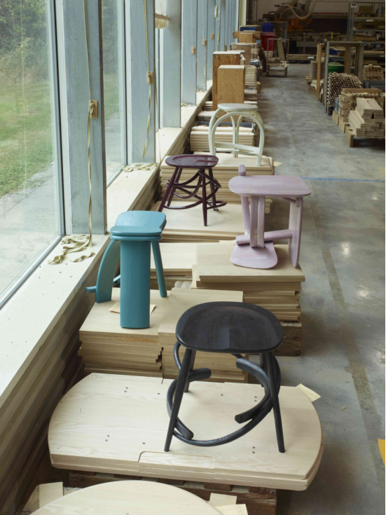 除了下文展示的個別作品外,在設計節期間,設計愛好者還可以欣賞到完全專注于該材料的展覽。例如,在Clerkenwell消防站舉行的“Grain Pile”展覽,由Max Radford畫廊與英國家具制造商Ercol聯手打造。六位倫敦設計師——包括安杜·馬塞博、埃迪·奧林(Eddie Olin)、喬·阿米蒂奇(Joe Armitage)、雅克琳·帕帕拉多(Jaclyn Pappalardo)、伊莎貝爾·阿隆索(Isabel Alonso)和劉易斯·凱姆梅諾(Lewis Kemmenoe,其作品下文會重點介紹)——深入研究了Ercol的檔案庫,重新構想其木制家具以適應今天,并與Ercol的工作坊合作生產了新的凳、桌、長椅、椅、柜和一把搖椅。