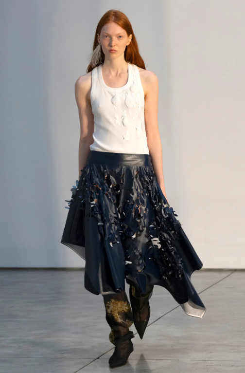 喜愛系列:?Khaite 表現突出,Catherine Holstein 以其標志性的性感與犀利進一步確立了國際地位。Michael Kors 的放松柔和有機輪廓也備受喜愛。Jason Wu 受 Robert Rauschenberg 啟發,運用拼貼手法打造出極具創意的系列。Rachel Scott 同時為 Diotima 和 Proenza Schouler 帶來出色首秀,令人印象深刻。Ashlyn 和 Toteme 雖仍屬新銳,卻以成熟的極簡奢華風格令人眼前一亮。