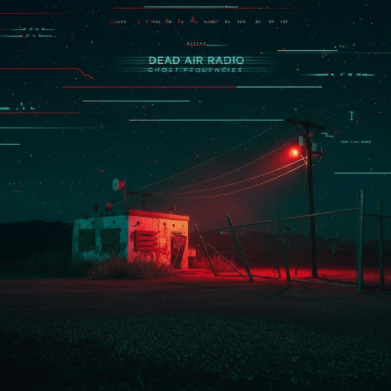 '實驗/氛圍;夜間、閾限平靜帶有不祥的緊張感;極致的電影感長曝光(流派與情緒)+?廢棄的1970年代沙漠廣播站,帶有傳輸塔、拉線和損壞的鐵絲網圍欄;碎石場地;夜間電線發(fā)出微弱光芒;無人(主體/場景)+?寫實電影靜幀;基于物理的渲染;超細致;觸感材質(氧化金屬、破裂的灰泥、布滿灰塵的玻璃、風化的標牌、碎石)(藝術風格/媒介)+?午夜靛藍/teal陰影;CRT電視綠色點綴;月光銀帶有淡淡的洋紅色溢出(調色板)+?低三腳架24–35mm establishing shot;塔居中,地平線在下三分之一處;電纜/電線的引導線;為文字留出充足的負空間天空(構圖/視角)+?極致效果:極長曝光星軌;濃密的體積沙漠塵埃和霧霾;電線沿線強烈的電暈發(fā)光/圣艾爾摩之火;滾動快門光條紋;微妙的光繪掃描;縈繞的廣播/廢棄主題(特殊效果/主題)+?文字:“DEAD AIR RADIO”作為標題位于中上方,帶有 subtle horizontal speed-motion/scanline效果;“GHOST FREQUENCIES”直接在其下方,較小;斜體,condensed techno-humanist grotesque字體,大寫,緊密字距 (+10–20),清晰字間距,無重陰影(文字元素)。'