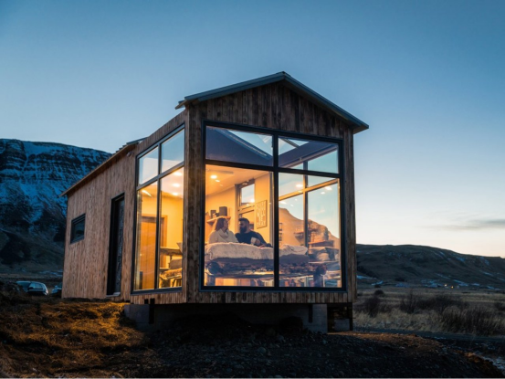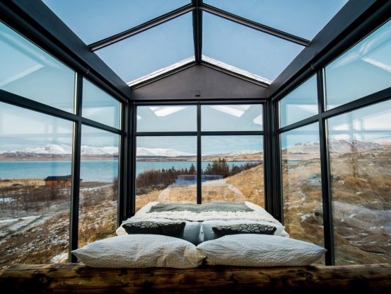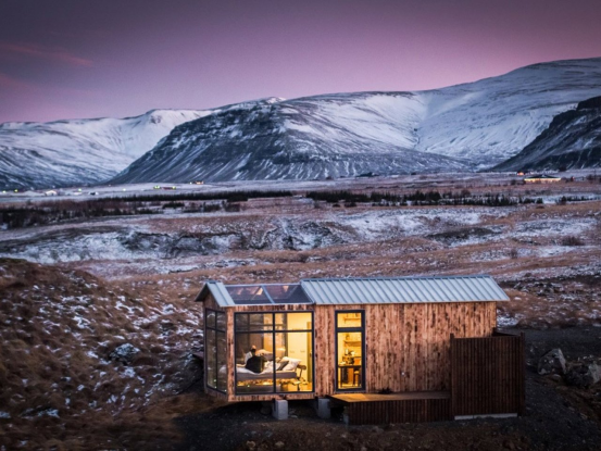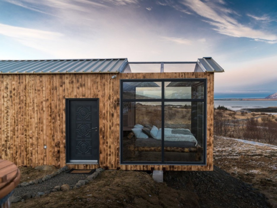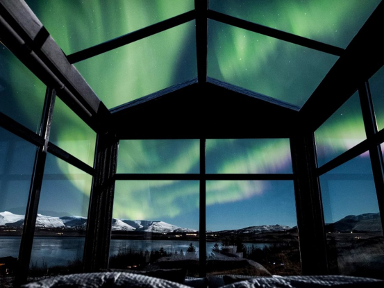 全景玻璃小屋(Panorama Glass Lodge)以其全玻璃結(jié)構(gòu)完美詮釋這一理念,有意模糊室內(nèi)與室外的界限。空間并未用裝飾元素填充,而是經(jīng)過深思熟慮的設(shè)計,以展示周圍的自然美景。落地玻璃面板提供無間斷的視野,白天是冰島 striking 的地貌,夜晚則是空靈的北極光。在這樣的環(huán)境中,有意識的設(shè)計將小屋變?yōu)橐粋€活的藝術(shù)畫廊,大自然是作品,而建筑僅是為了框景而存在。