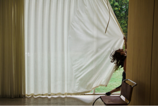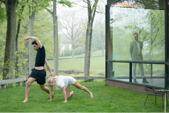 法恩斯沃斯住宅中的編舞表演,探索密斯·凡·德·羅作品中的“酷兒空間”。圖片 ? Bradley Glanzrock, LStopMedia.com。由 Gerard & Kelly 提供