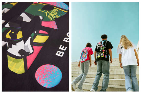 "我們很幸運(yùn),因?yàn)?Julian 的所有作品都是在 Illustrator 中完成的,所以它幾乎已經(jīng)為印刷做好了準(zhǔn)備," Matt 談到這些設(shè)計(jì)時(shí)說,這些設(shè)計(jì)在最終確定樣品前只需要稍作調(diào)整。"每個(gè)合作系列都以藝術(shù)家的名字命名,每位藝術(shù)家都以自己的風(fēng)格創(chuàng)造出那個(gè)角色。Julian 創(chuàng)作了 Big Tony 和 Lil Flo,我們一下子就愛上了,并且知道它們會(huì)成為我們的首發(fā)作品。這藝術(shù)太棒了,我們盡可能大地把它印在T恤和夾克的背面。"