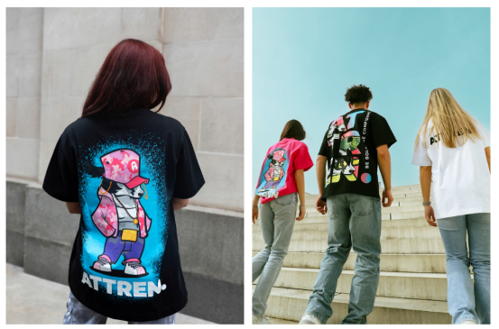 數(shù)字工具帶來的自由 democratise 了印花設(shè)計(jì),使得像英國(guó)街頭服飾品牌 ATTREN 的聯(lián)合創(chuàng)始人 Matt 和 Lauren Rowley 這樣的獨(dú)立設(shè)計(jì)師能夠與知名品牌競(jìng)爭(zhēng)。雖然他們最初花時(shí)間在倫敦尋找靈感("拍攝任何啟發(fā)我們的東西——色彩、地標(biāo)、衣服、商店、街上的人," Matt 說,然后勾勒出想法),但他們決定與藝術(shù)家合作來提升服裝品質(zhì)。