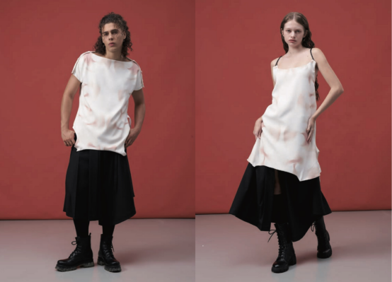 這個(gè)想法源于 Wei 經(jīng)常被問到:'"你是怎么想出那些設(shè)計(jì)的?你的腦子里到底有什么?"'他說。"由于SS25系列達(dá)到了INF變形設(shè)計(jì)的頂峰——比如一件T恤可以變成手提袋,一條裙子可以變成褲子,一件連衣裙可以變成上衣——我想,為什么不通過展示我的大腦來回答人們呢?" Wei 說。"我拿我的腦部核磁共振圖像作為印花設(shè)計(jì)的基礎(chǔ)紋理,并添加了一些處理,如模糊、擴(kuò)散、旋轉(zhuǎn)和翻轉(zhuǎn),從而產(chǎn)生了現(xiàn)在你在單品上看到的印花。"