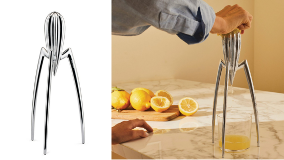 Alessi Juicy Salif檸檬榨汁器與你見過的任何榨汁器都幾乎毫無相似之處。因此,當你知道它是由標志性的家具和產品設計師菲利普·斯塔克設計的(據說是在一次意大利海濱度假時草草畫在餐巾紙上的),可能就不會感到驚訝了。