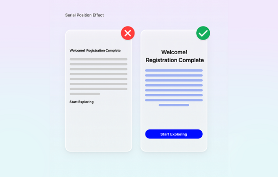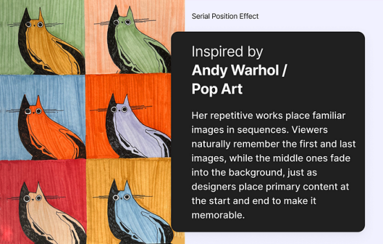 設(shè)計(jì)師可以在界面、廣告或內(nèi)容布局中策略性地運(yùn)用序列——將標(biāo)題或大圖放在開(kāi)頭,將重要按鈕放在末尾,以確保關(guān)鍵項(xiàng)被注意和記住。