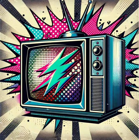 提示詞:"一臺復古電視機的波普藝術矢量插圖;波普藝術/漫畫書風格,帶有全息設計點綴;居中構圖,帶有半色調圓點背景和海報式框架;大膽的平涂陰影,清晰的矢量邊緣,細微的屏幕發光效果和全息高光;復古配色(啞光紅色、芥末黃、藍綠色、米白色),帶有濃重的墨水輪廓和本戴點紋理,營造復古氛圍;高分辨率,高質量,高細節。"