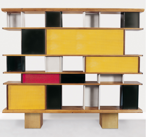 佩里安著名的「云朵」書架(1953年)據稱靈感來源于她在京都桂離宮看到的架子。她的模塊化、直線型設計結合了滑動面板、托盤和木制擱板,可以根據需要重新排列。多年來生產了多個版本,其富有韻律的網格構圖讓人聯想到蒙德里安的畫作活了起來。