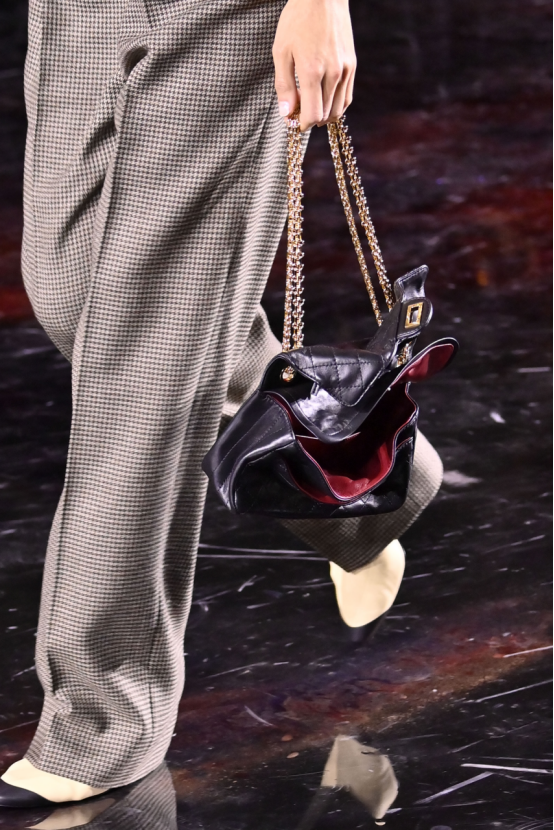 傳承的理念縈繞在香奈兒的馬蒂厄·布拉齊心頭并不出奇——畢竟,他在該品牌的首秀意味著他接手的不僅是一位,而是兩位時尚巨擘的遺產(chǎn):嘉柏麗爾·"可可"·香奈兒與卡爾·拉格斐。最初靈感源自嘉柏麗爾·香奈兒與英國馬球運(yùn)動員博伊·卡佩的戀情,以及她借用對方夾克和襯衫的方式,衣物在人與人之間——甚或是代際之間——傳遞的想法,成為該系列的貫穿主線之一。他說,這就是像香奈兒這樣的時裝屋的奢侈所在,"真正時髦者衣著的熟悉舊感,物品感覺是傳承下來并被使用過的,"他如此描述。在系列中,這體現(xiàn)在看似邊緣磨損的服裝上(懸掛的"線頭"實(shí)際上是微小的串珠),而2.55菱格紋手袋則經(jīng)過巧妙處理,呈現(xiàn)出破舊和使用過的樣子。