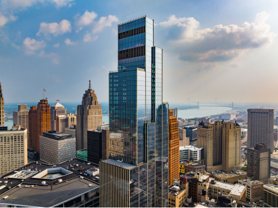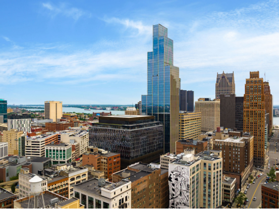 由SHoP設計的新建筑Hudson's Detroit一景。