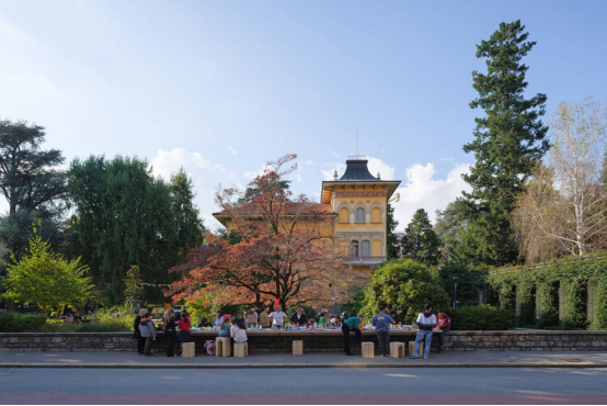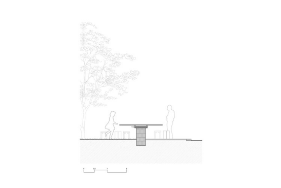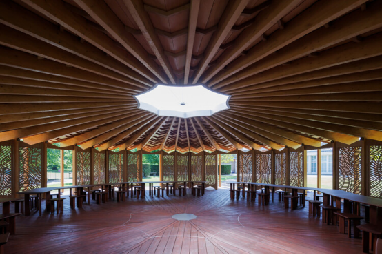 "à Table"是一個法語表達,意思是"吃飯了"或"來桌邊"。在這個以纖細木結構建造的展亭內部,一圈桌椅邀請訪客進入、坐下、放松、用餐或一起工作。據建筑師所述,設計始于圍桌而坐以思考我們與地球的關系,以及我們彼此之間關系的概念。庇護此空間的想法隨后產生,旨在保護身處其中的人們,同時保持對周圍環境的開放。