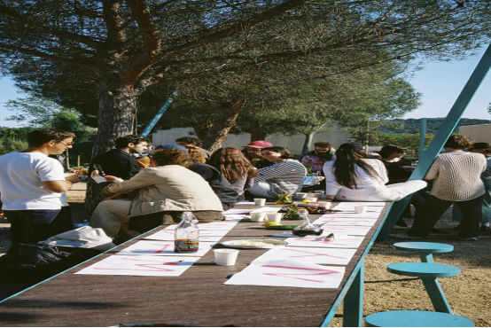 作為2022年孔森特里科藝術節的一部分,"來桌邊!"抓住了圍桌聚會的理念。其流動的形態創造了各種角落和壁龕,如同一個將被鄰里們征服的生命有機體。其活動安排包括大眾餐會、工作坊、會議和談話等。