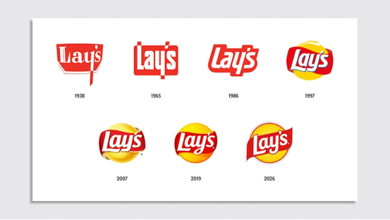 新標志摒棄了手寫體的筆觸,專注于字母的末端,這些末端以一個近乎有機的尖角收尾,近乎于一個鉤狀。這些末端旨在映照環繞太陽的紅色絲帶的形狀,以確保字母的易讀性。當然,在全球各地,樂事并不總是叫"Lay's"。例如在哥倫比亞,樂事被稱為"Margarita"——是的,這個九個字母的品牌名稱必須適應與簡短甜美的"Lay's"相同的空間布局。