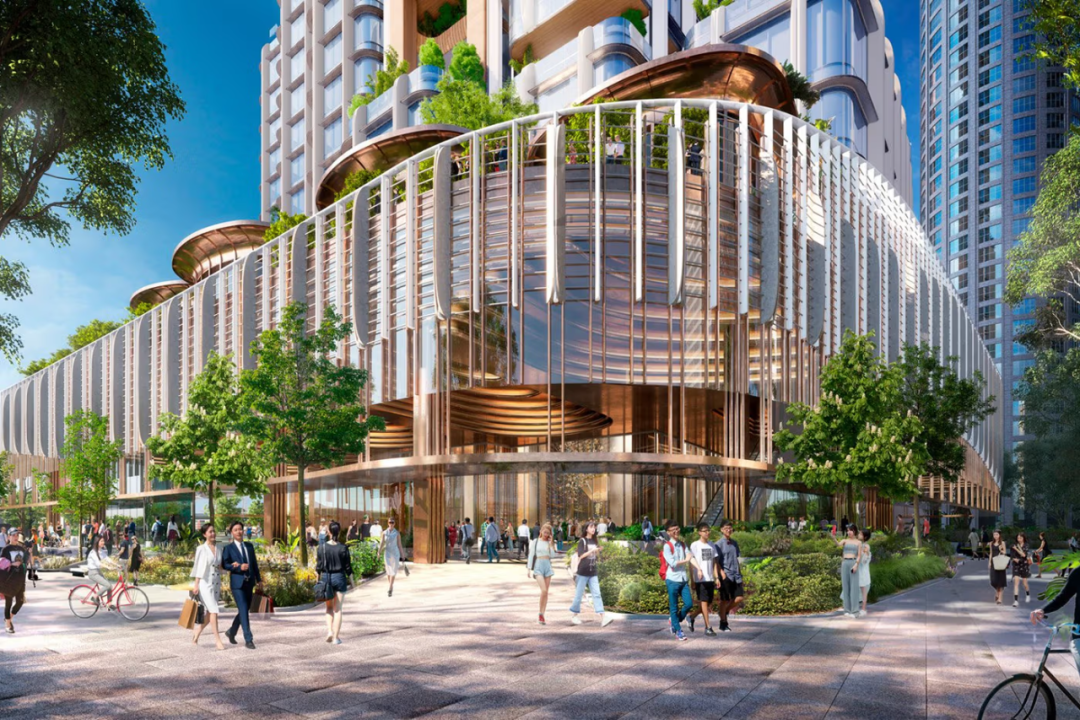 裙樓部分主要用于商業和零售功能,提供高端的購物體驗和優質的辦公空間。整體設計以現代簡潔的風格為主,外立面采用玻璃幕墻,確保充足的自然光進入室內,同時打造一個通透、明亮的購物和工作環境。
