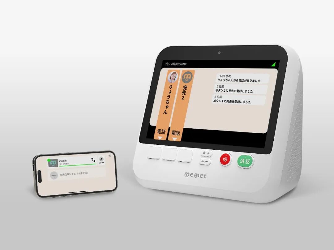 為希望與遠(yuǎn)方家人交流的老年群體設(shè)計(jì)的視頻通話服務(wù)。不同于傳統(tǒng)的視頻通話服務(wù),無需進(jìn)行互聯(lián)網(wǎng)設(shè)定,開機(jī)即可使用。本體外形簡潔,專注于“看著畫面通話”的使用情境,即使不經(jīng)指導(dǎo)也能直觀操作。