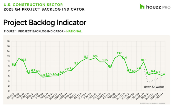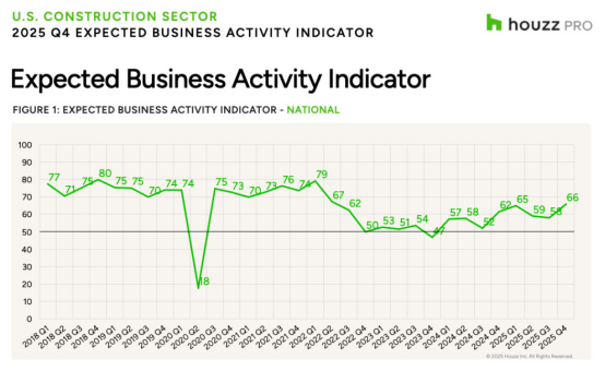 Q4 2025 Houzz美國裝修晴雨表顯示:建筑和設計公司近期業務活動出現分化