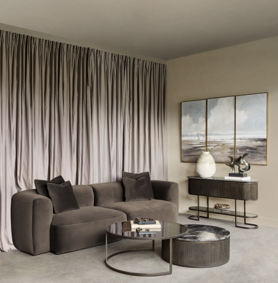 Libra Interiors的這款讓人深陷其中的Wicklow長沙發所采用的巧克力色絲絨軟包,在展會上首發。