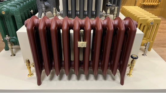 Castrads以定制立柱散熱器聞名,其團隊將這款棕色的Grace型號放置在展位的正前方和中心位置。除了Signature和Bare Metal選項外,還可以訂購Little Greene、Farrow & Ball和Benjamin Moore涂料公司的任何顏色的散熱器。