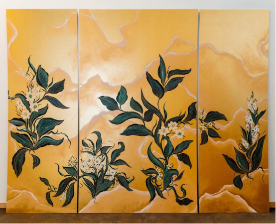 受樹葉和花瓣的韻律與重復啟發,紡織藝術家Louise Heighes使用皮革將花卉和枝葉的柔軟質感以裝飾板的形式帶入室內,這些裝飾板可作為藝術品或屏風。