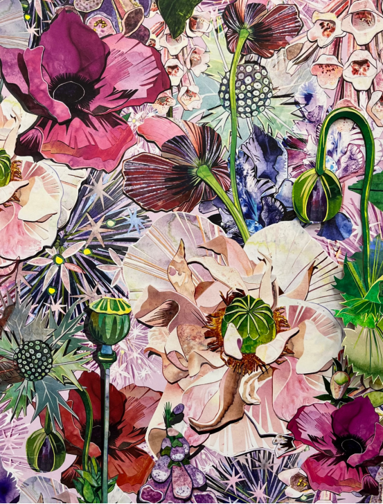 Claire Coles的手工壁紙壁畫,采用紙張、絲綢和皮革制成,融合了貼花、刺繡和繪畫,使她那些受動植物啟發的作品具有真實的存在感。