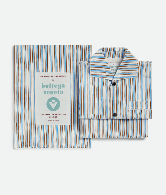 這款Bottega Veneta條紋睡衣襯衫是一款真正奢華的旅行套裝的一部分,配有專屬收納包,并裝飾有讓人聯想到該品牌1966年于意大利維琴察創立時使用的標簽。事實上,這款睡衣采用Bottega Veneta故鄉的桑蠶絲精心制作——如同其象征意大利手工藝的經典手袋一樣。