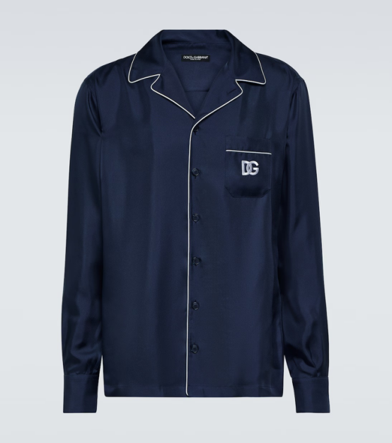 得益于其寬松的廓形,睡衣襯衫是從伴侶衣櫥里"借穿"的完美單品。這款來自Dolce & Gabbana——睡衣風著裝的長期擁護者——的男士襯衫,采用滾邊絲綢剪裁而成,口袋上飾有刺繡的"DG"標志。