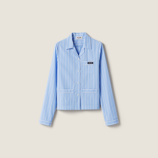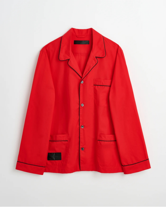 Miuccia Prada長久以來一直熱衷于重塑平凡,為原型和刻板印象注入新的吸引力——從網球裙、職業裝,甚至樸素的圍裙(后者為她最近的Miu Miu 2026春夏系列提供了基礎)。這款對經典睡衣襯衫的寬松演繹,采用條紋棉府綢制成,并飾有這家意大利品牌標志性的Logo標簽。